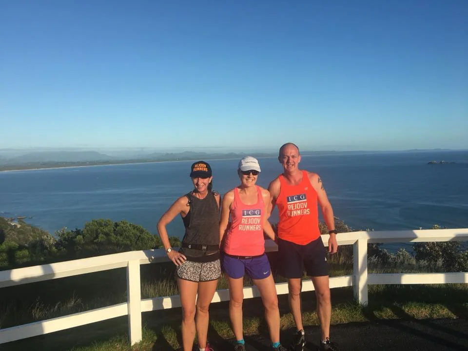 Adrienne Taylor, Lisa Sherman (centre) & hubby Grant Sherman holiday training at Byron Bay